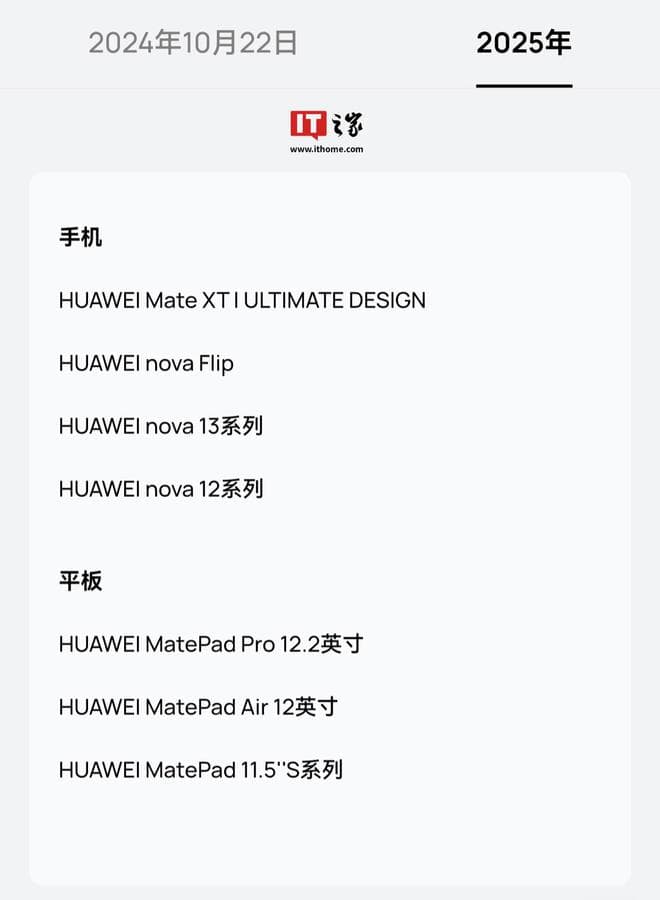 目前,支持升级鸿蒙 HarmonyOS NEXT 系统的设备计划如下: