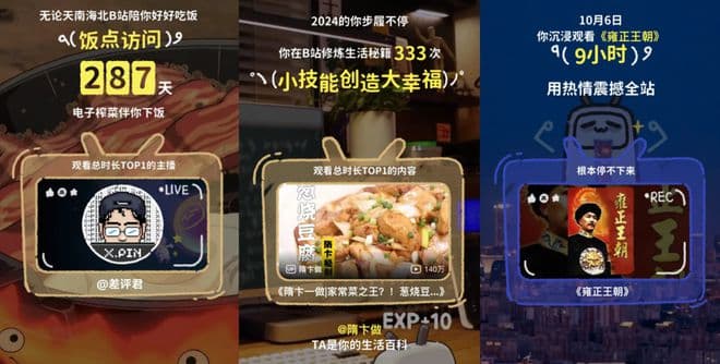 搜索「 年度报告 」,打开你 2024 年的 B 站生活时刻。