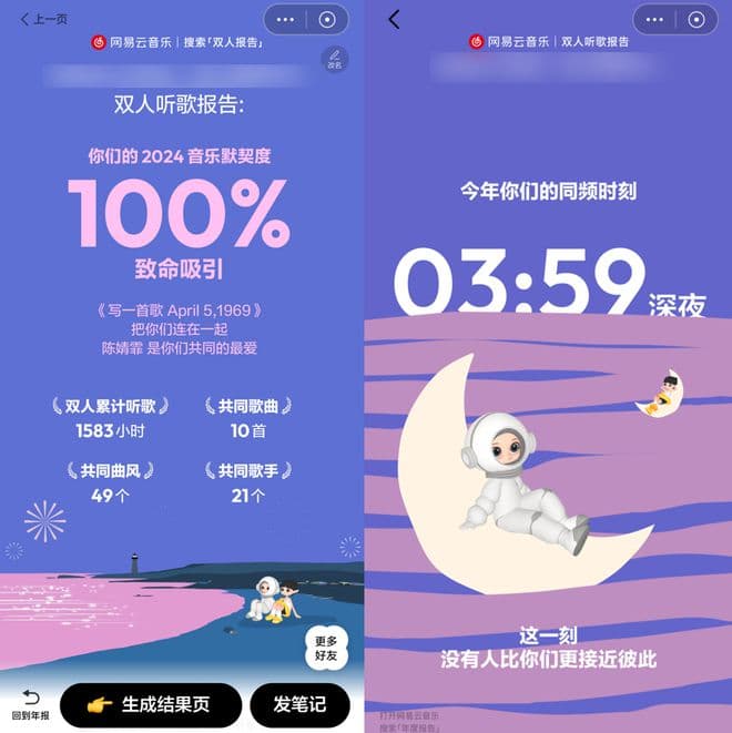对了,搜索「 双人报告 」,就能回顾这一整年你跟朋友们的双人听歌报告,懂得都懂。