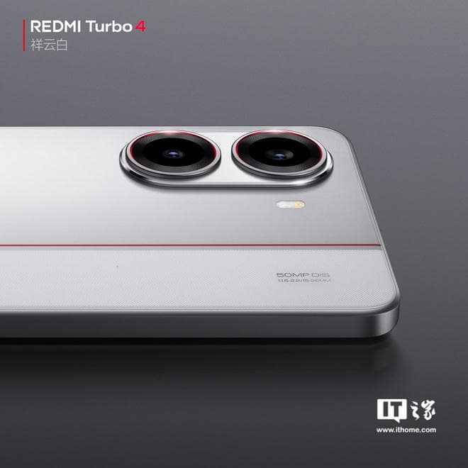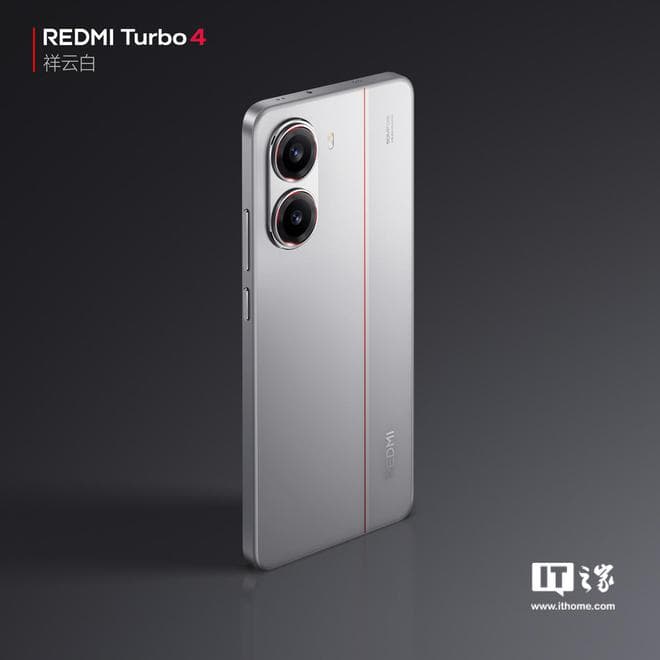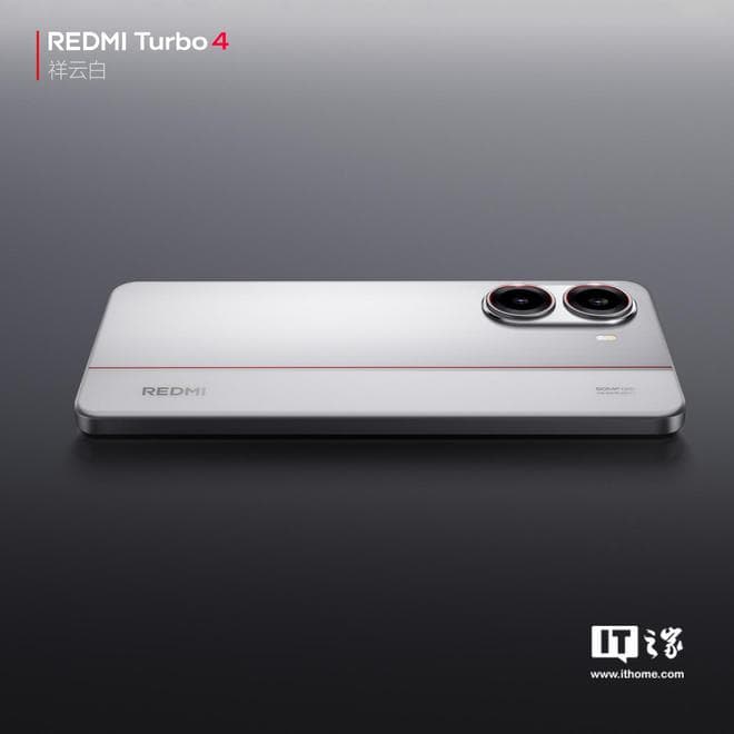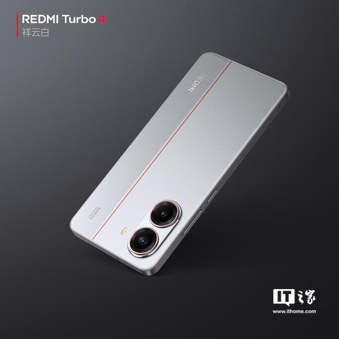 IT之家 12 月 30 日消息,小米 REDMI 手机官方今天早些时候宣布,REDMI Turbo 4 手机发布会定档 1 月 2 日 14:00,刚刚官方又公布了 Turbo 4 新配色“祥云白”的官图。