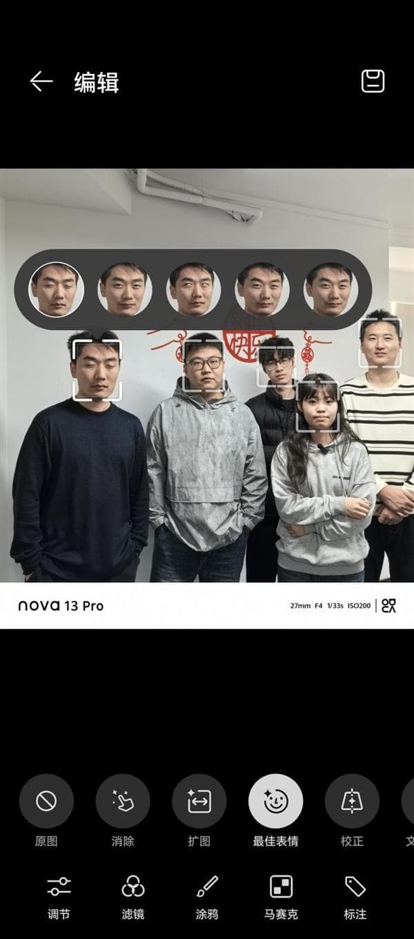 这时,只要在其中选择最佳的那个表情就可以了,华为nova 13 Pro会自动将该表情融入这种照片,替换掉原来的表情。