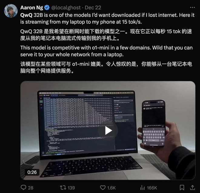 开发者在Macbook Pro上运行QVQ