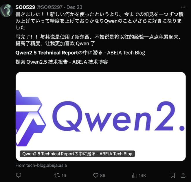 不少日本开发者在认真研究 Qwen2.5 的技术报告