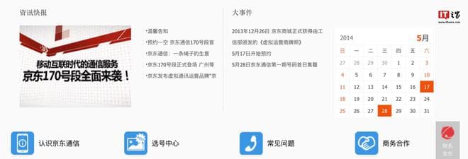 京东通信于2014 年 5 月 17 日开放预约,同年5 月 28 日正式发售,首批开放城市为上海,南京,杭州,北京,广州,成都,哈尔滨,武汉。IT之家查看官网获悉,目前官网大部分信息均停留在 2014 年 5 月。