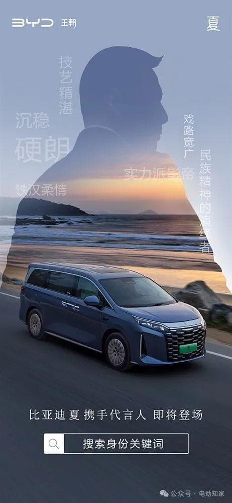 此前,比亚迪透露,新车型夏将会拥有一位代言人,代言人的海报关键词包括技艺精湛、沉稳、硬朗、铁汉柔情、实力派影帝、戏路宽广、民族精神的演绎者。从海报中的剪影中,不少人猜测该代言人可能会是陈道明或者张涵予,而如今,答案已经公布,它就是张涵予。