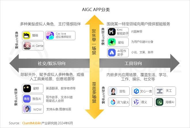星野相较同类产品拥有更大用户黏性。QuestMobile发布的2024年上半年报告显示,主流AIGC应用的月人均使用天数基本低于5天,而星野达到了7.7天。