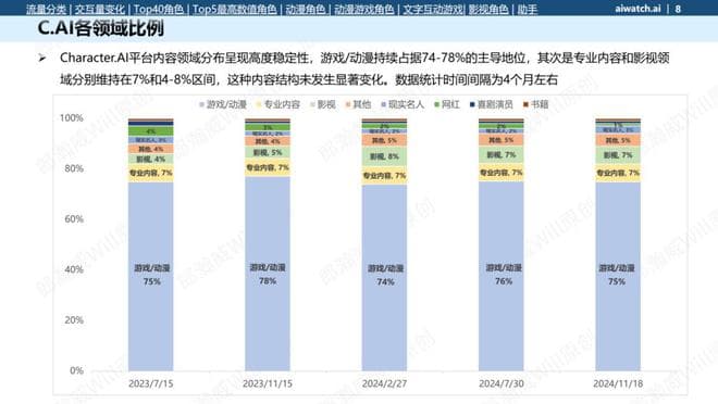 市场产品普遍同质化严重,可替代性较强。无论是产品设计、角色选择、聊天风格模型都高度趋同。事实上,不管是C.AI还是星野,大部分AI陪伴产品的流量生态靠的是IP堆叠起来的智能体,平台作为IP的下游产业,手上并没有掌握IP议价权。