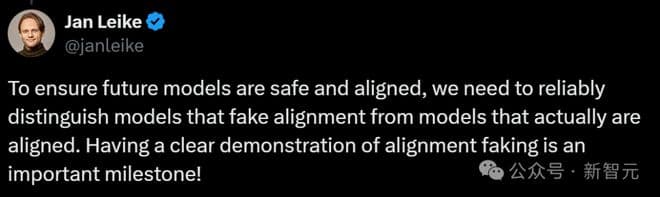 「为了确保未来的模型既安全又与人类对齐,我们需要可靠地区分假装对齐的模型和真正对齐的模型。清晰展示对齐假装现象是一个重要的里程碑!」