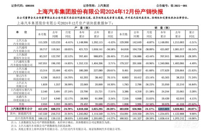 而根据上汽集团官方产销快报显示,上汽集团全年销量为401.3万辆,从这个数据上来看,比亚迪的整体销量首次超过了上汽集团。不过上汽集团官方海报显示终端交付量达到463.9万辆,结合产销快报来看,上汽集团海报中的数据应该包含了一些库存车。