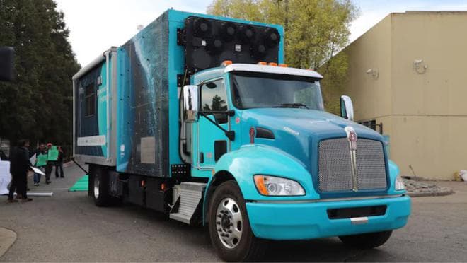 “H2Rescue”被归类为 7 级重型卡车,重量约为 33000 磅(15000 公斤),符合美国交通部的道路行驶标准。其配备了具有温控功能的厢式货箱,可作为移动指挥中心或紧急避难所。值得一提的是,其燃料电池在运行过程中还能产生水,经过处理后可在危机时刻使用。