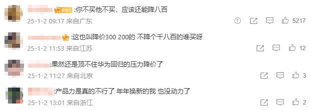 也有网友表示,苹果官网的降价力度“毫无竞争力”,还不如第三方平台折扣大,并指出由此也可以看出苹果目前“市场压力大”。