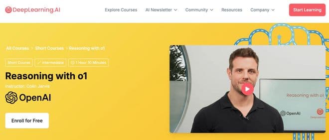 最近,OpenAI 联合人工智能著名学者、斯坦福大学教授吴恩达推出了一门关于使用 o1 进行推理的免费 DeepLearning.AI 课程 ——Reasoning with o1,讲师是 OpenAI 战略解决方案架构主管 Colin Jarvis。