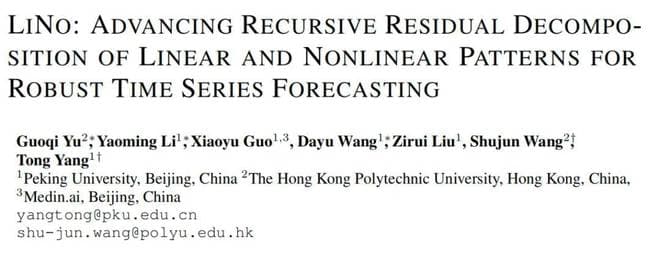 正是在这样的背景下,北京大学联合香港理工大学以及每因智能的研究团队提出了 LiNo 框架。该框架通过递归残差分解(Recursive Residual Decomposition, RRD)技术,实现了对线性和非线性模式的显式提取。