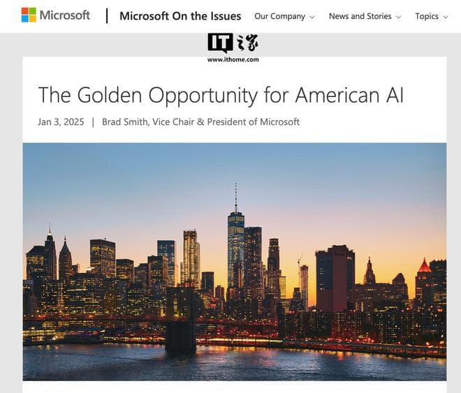 史密斯表示:“美国目前在全球 AI 竞赛中处于领先地位,这得益于私人资本的投入以及美国各类公司的技术创新,无论是初创企业还是成熟公司都在推动进步。在微软,我们亲身经历了这种变化,特别是通过与 OpenAI 的合作,以及与 Anthropic、xAI 等新兴企业的联系,同时依托自身的 AI 软件平台和应用。”
