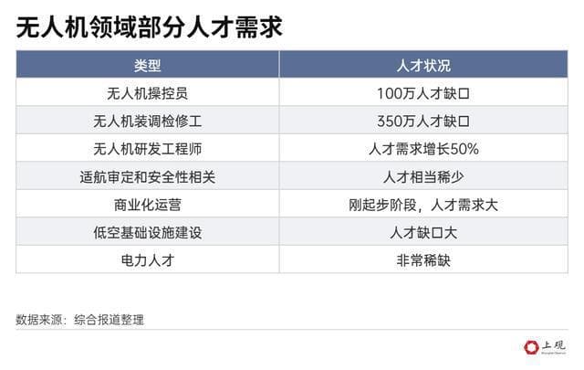 此外,低空经济目前处于大规模商业化的起步阶段,无人机研发、服务、运维、教育等全产业链的人才,都处于需求增长阶段。