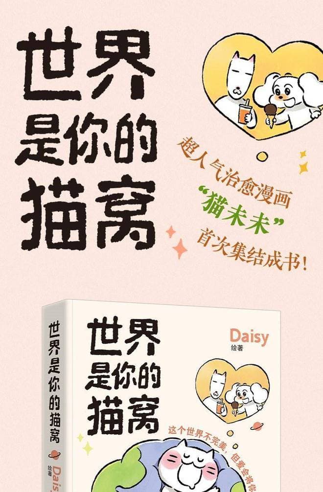 《世界是你的猫窝》由社交平台超人气漫画账号「猫未未」的故事首次集结而成,其作者 Daisy 通过温柔的笔触捕捉日常生活的细小瞬间,绘出治愈浪漫的故事。