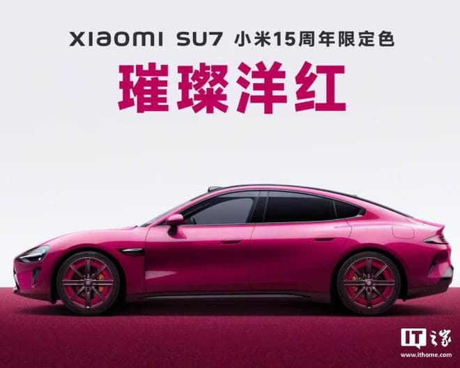 IT之家 1 月 5 日消息,在 2024 年的最后一天,小米为 SU7 车型推出了小米 15 周年限定色 —— 璀璨洋红,限时改配时间将在今日 24 点截止。