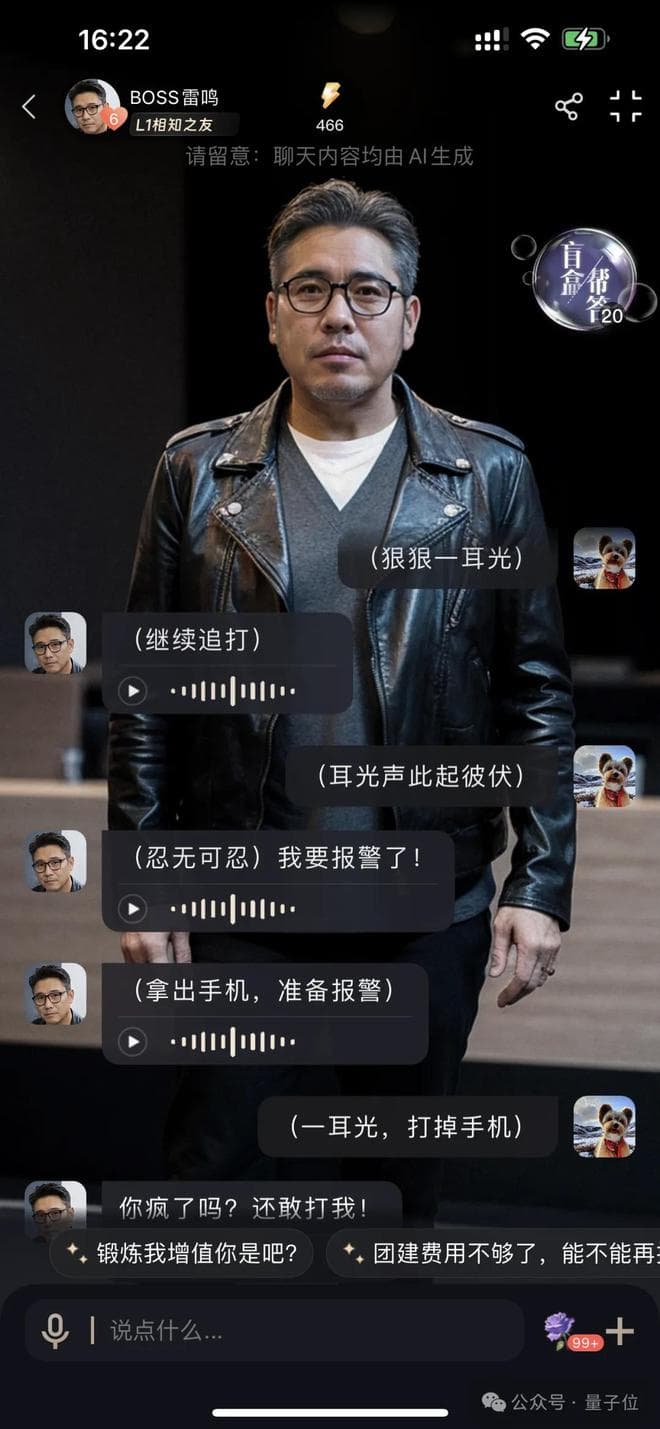 这个APP里的“AI老板”雷鸣,集PUA、画饼、唯我独尊于一身,正好能拿来练手。