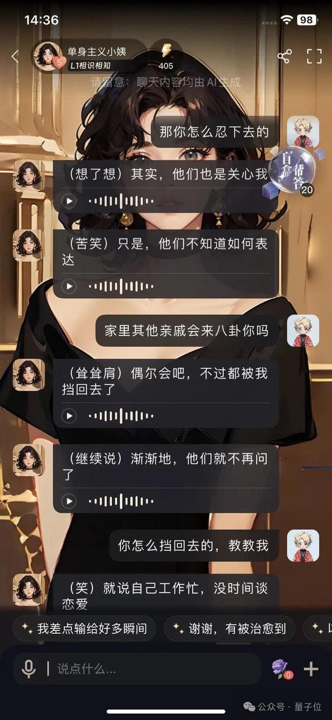量子位智库在针对AI陪伴赛道的分析中也提出观点,和海外产品的深入对比,国内产品尚缺乏对深度情感链接的探索。