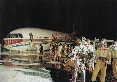 这时候,空乘人员通知客舱内的乘客们做好紧急着陆的准备。而在地面上,消防员在飞机准备着陆的跑道上喷洒了消防泡沫,以扑灭机腹着陆时产生的火花。同时,消防车和救护车也抵达机场做好准备。