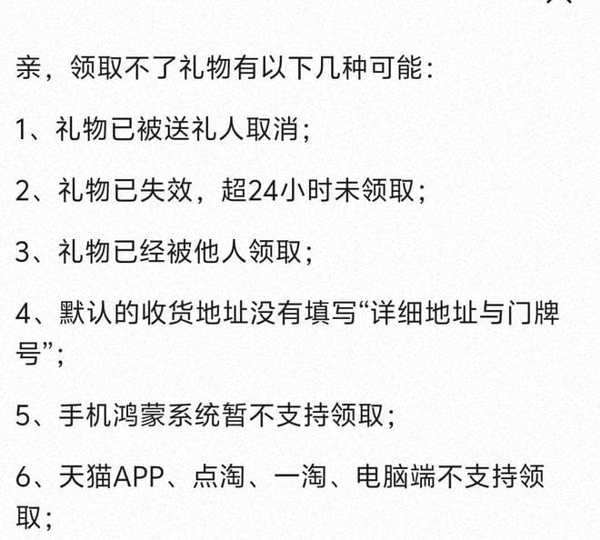 据悉,用户可以选择“支持送礼”的商品,点击“去送礼”,完成下单支付(不用填写收货地址),点击送给朋友,通过淘口令、二维码等方式分享给朋友(不要忘记分享安全口令),即可完成送礼物。