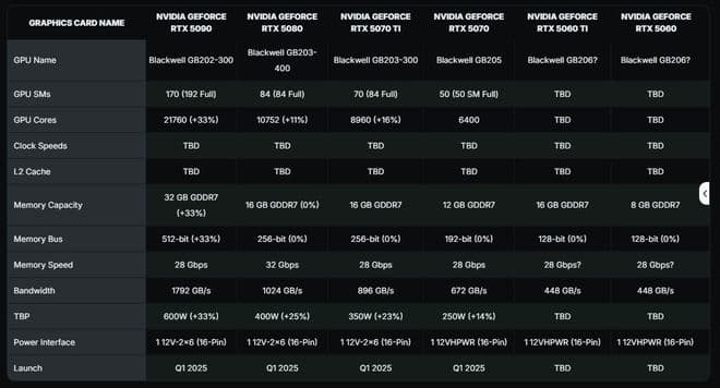 GeForce RTX 5090、GeForce RTX 5080和GeForce RTX 5070 Ti笔记本将于3月上市,GeForce RTX 5070笔记本将于4月上市。