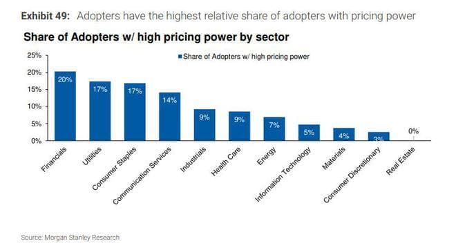 大摩同时建议投资者重点关注AI采纳者(Adopter)中,定价权的关键性差异。