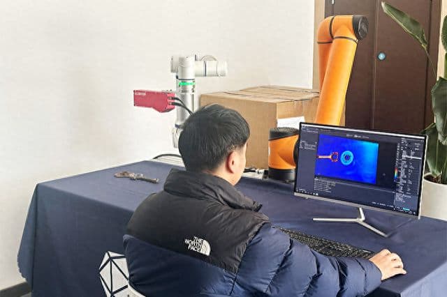 视觉系统相当于机器人的“眼睛”,如何让机器人看得清、看得准,考验着相关企业的技术实力。在埃尔森智能科技工作区,一款搭载3D视觉产品的机器人扫描某工业器具后,与其相连的电脑显示出该器具的3D点云图像。