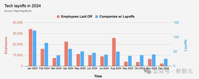 根据Layoffs.fyi的数据,在2022年和2023年的大规模裁员后,2024年全球有超过15万个工作岗位被裁员,涉及545家公司。