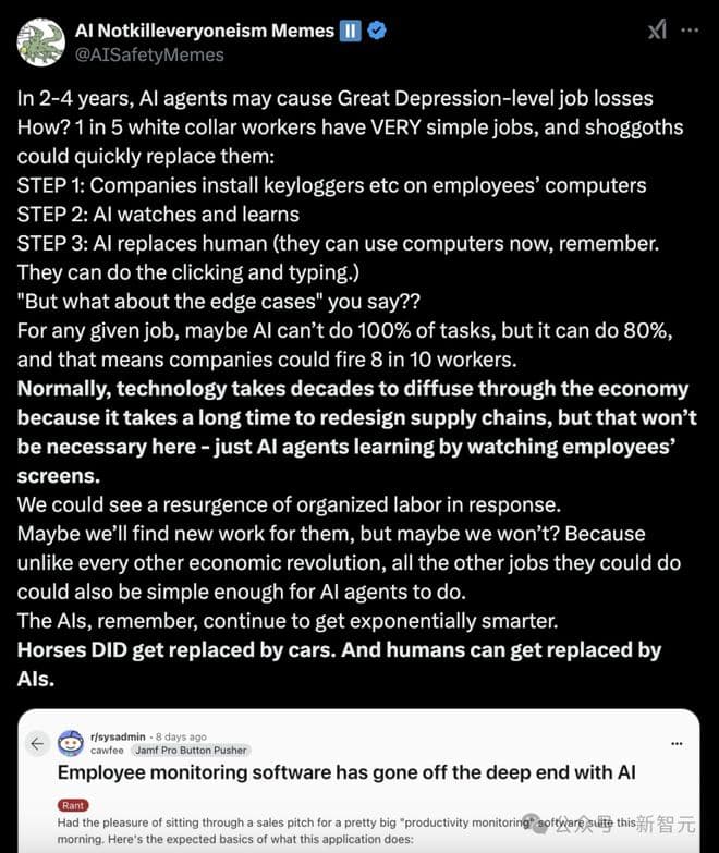 在未来的2到4年内,网友预测AI智能体可能导致大萧条级别的失业潮。