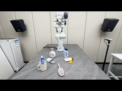 动作策略泛化。模型应实时进行推理决策,不仅会移动跟随目标,对于物体竖放、倒放等不同摆放方式,还可根据物体和夹爪的位姿自动调整策略,选择最安全合理的抓取方式,处理复杂情况。