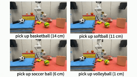 另一方面,经过合成大数据的预训练,GraspVLA 已经天然满足大多数应用需求,但是在产品和特定场景中常常有一些特殊需求,因此模型需要拥有对新需求的快速适应及迁移能力。
