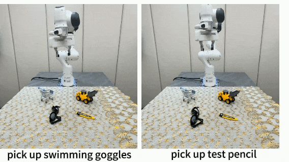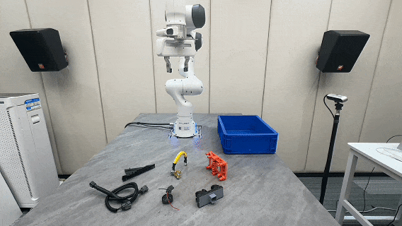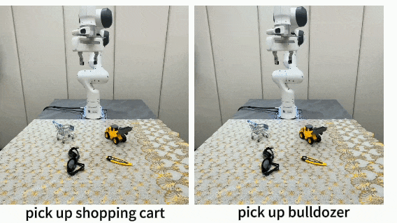工业场景中,往往有大量行业专用的特殊零件。虽然模型仅需预训练就可以抓起任意零件,但难以直接根据语言指令抓起对应物体,比如指定“抓取车窗控制器”,但模型抓起了接线座。