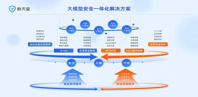 蚂蚁集团发布了大模型安全一体化解决方案「蚁天鉴」,包含大模型安全检测平台「蚁鉴」、大模型风险防御平台「天鉴」两大产品,拥有检测与防御两大核心安全技术能力。