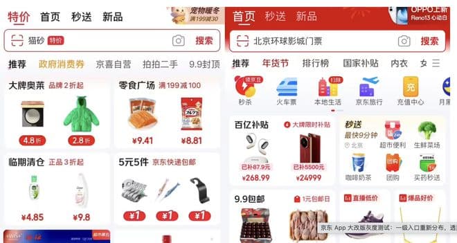 京东 App 大改版灰度测试:一级入口重新分布,透露三个业务信号