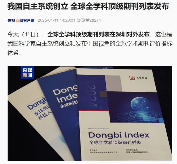 IT之家 1 月 11 日消息,据央视报道,全球全学科顶级期刊列表今天在深圳对外发布,这也是我国科学家自主系统创立和发布中国视角的全球学术期刊评价指标体系。
