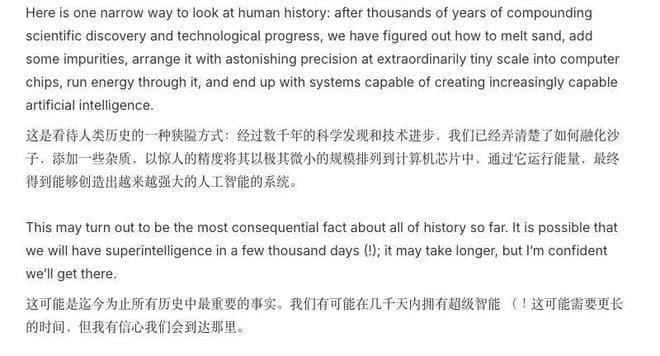 而至于这个超级智能到底啥时候能实现,奥特曼说 “ 在头几年,可能不会有太大的变化。然后可能会发生很大变化。 ” 但具体有多久呢,在 9 月份 OpenAI 的博客中他又说,那估计得再过几千天了。