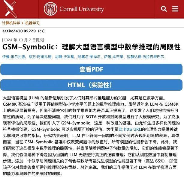 因为他们发现,当在问题中添加无关信息时,模型性能会出现严重退化。