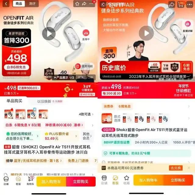 新版京东与淘宝的商品页视觉对比(左:京东,右:淘宝)