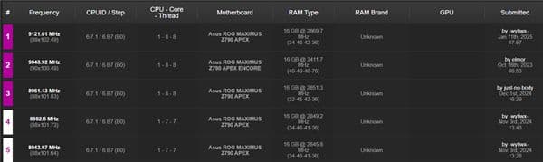 此前,这一记录一直由Elmor保持,他是唯一一个将CPU频率突破9 GHz的人,如今wytiwx和Elmor成为唯二将处理器超频突破9GHz的人。