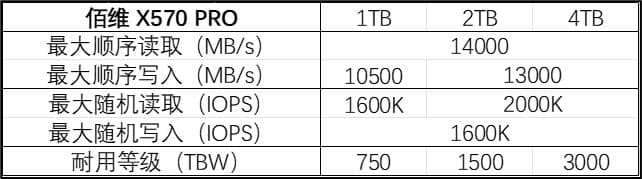 IT之家整理佰维 X570 Pro 固态硬盘各容量版本参数如下: