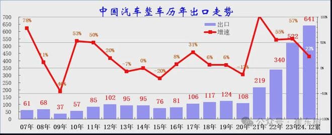 2024 年中国汽车出口 641 万台增 23%