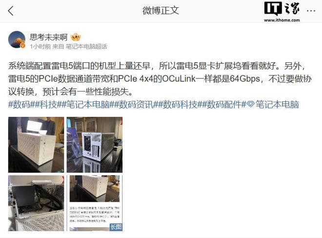 IT之家 1 月 14 日消息,联想 ThinkBook 产品经理@思考未来啊 今日发微博称,市场上暂时不会大批量出现配备雷电 5 接口的机型,所以他认为雷电 5 显卡扩展坞短期内没有太大实用价值。