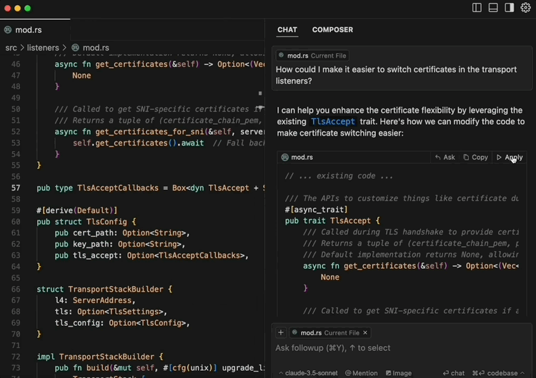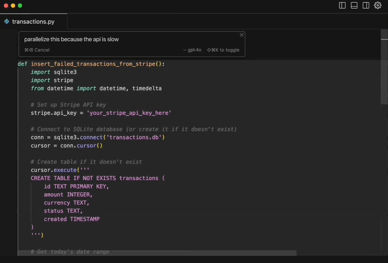 尽管类似的对话式编程工具已经存在,但Cursor Chat通过“Apply”功能简化了代码修改过程,提供了比传统代码编辑器更高效的解决方案。