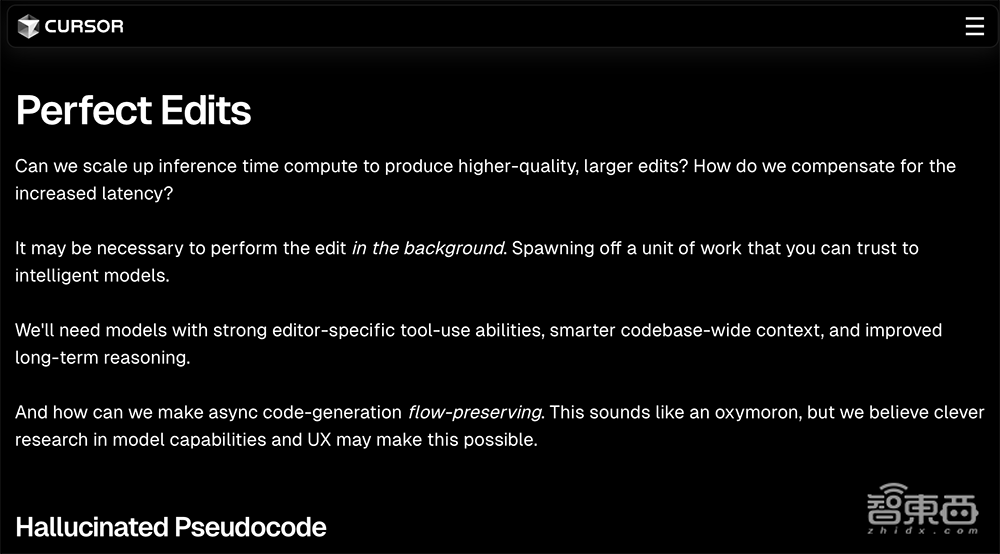 比较有意思的是,Cursor每年会发一篇博客文章,描述希望解决的问题列表。2023年列出的问题有更好上下文、编辑Copilot、主动查错、更大编辑范畴等,2024年列出的包括下一步行动预测、完美编辑、最佳语境、错误检测和调试。