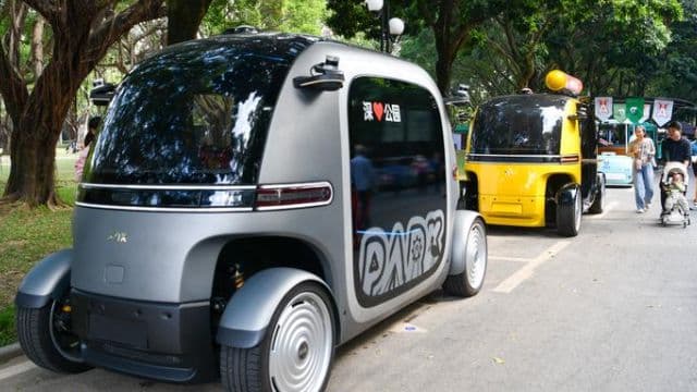 图为无人驾驶车辆行驶在深圳市坪山区的道路上