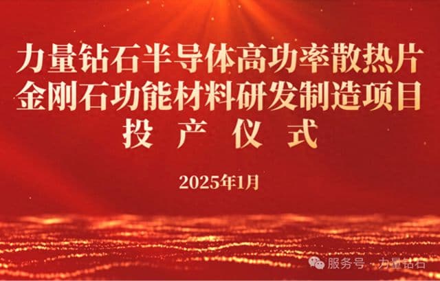 2025年1月15日,力量钻石半导体高功率散热片金刚石功能材料研发制造项目,历经一年多筹备和建设,正式建成投产。