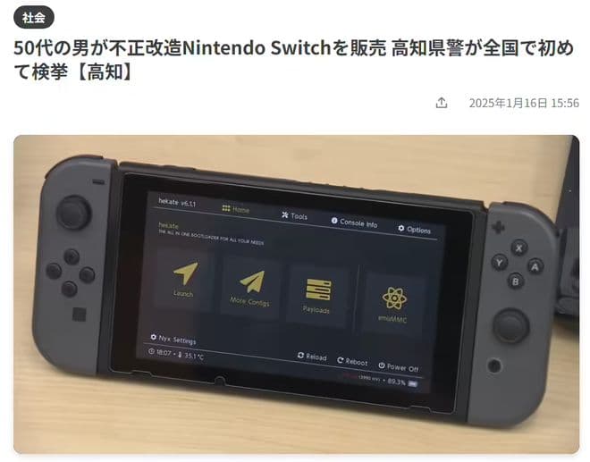 日本警方逮捕 Switch 游戏机破解人士,任天堂法务部再添「战绩」