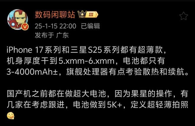 「超薄款」iPhone 17 Air 电池容量将低于 4000mAh