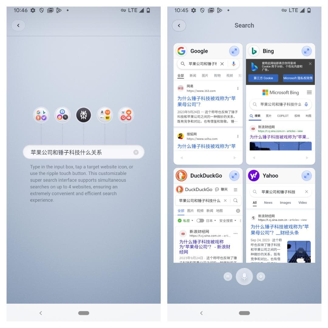 搜索功能下,你可以选择把不同搜索服务聚合,比如把搜索引擎放一块儿,让它们“赛马”;把购物网站放一起,“一键剁手”;把百科问答类网站放一起,让知识获取更全面。